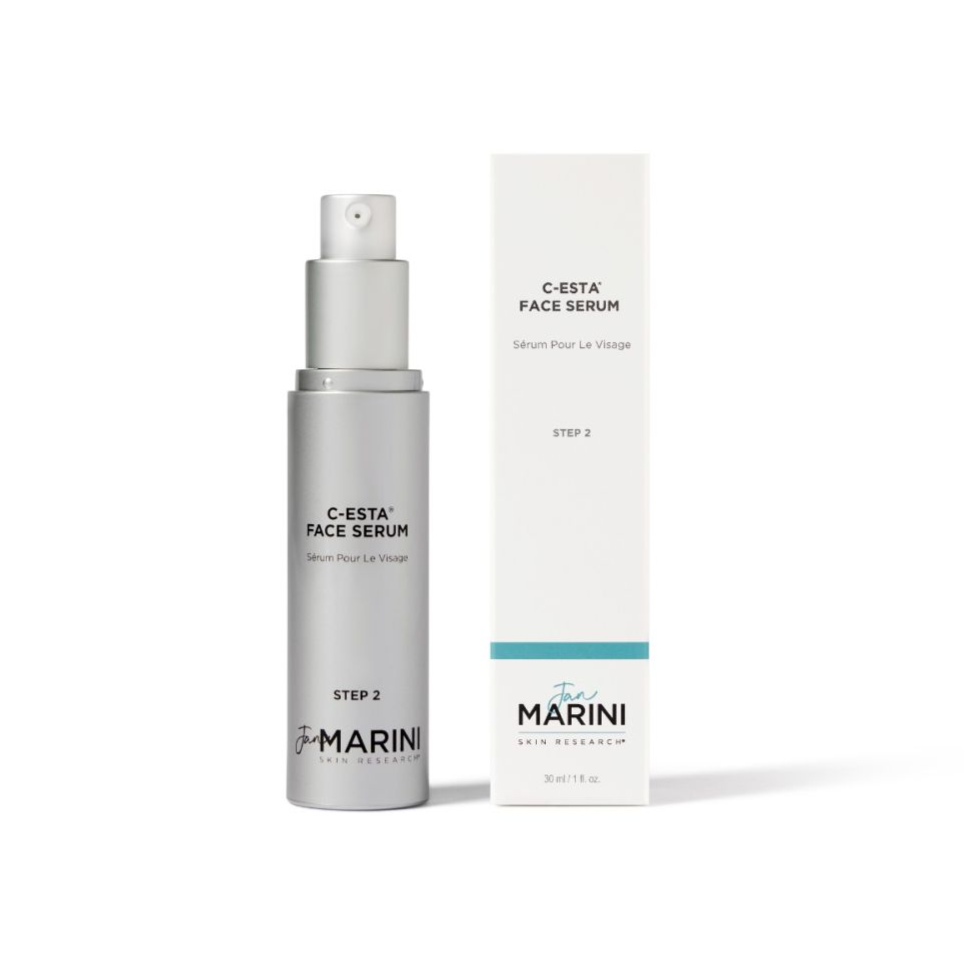 The Jan Marini C-ESTA Face Serum is a powerful antioxidant cocktail, featuring a lipid-soluble form of Vitamin C, DMAE, and hyaluronic acid to help reduce the appearance of fine lines and wrinkles and uneven skin texture while simultaneously protecting the skin from free radicals caused by UV exposure and environmental stressors. In a split-face Vitamin C study study published in the Journal of Drugs in Dermatology comparing C-ESTA to a leading vitamin C, C-ESTA Face Serum was shown to reduce the appearance of fine lines and wrinkles while providing superior benefits to the leading traditional Vitamin C. C-ESTA Face Serum was also significantly preferred by study subjects over the leading traditional vitamin C. C-ESTA's lipid soluble form of vitamin C enables this potent antioxidant to substantially assist the skin without the need for harsh acidity levels required by traditional forms of Vitamin C - meaning superior benefit with less irritation. DMAE enhances Vitamin C's face oil benefits by helping to further reduce the appearance of fine lines and wrinkles giving facial contours a tighter, firmer, more "lifted" look. C-ESTA Face Serum is the preferred Vitamin C and antioxidant solution for younger, healthier looking skin. This Jan Marini Vitamin C serum is great for all skin types.