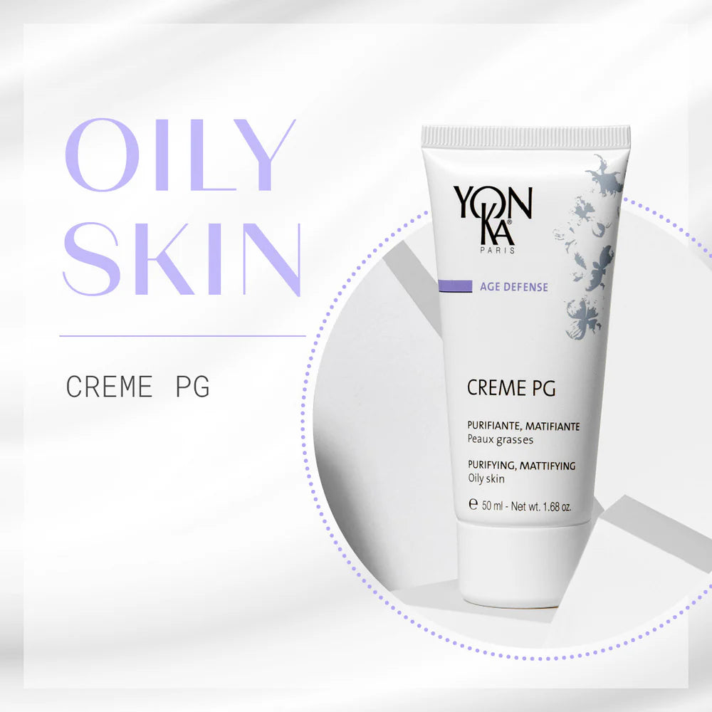 Our multi-action cream for oily skin minimizes pores, balances sebum production, and diminishes signs of irritation. Creme PG features naturally astringent burdock root to help control oil secretion, alleviate congestion, and reduce signs of inflammation. An infusion of olive oil and soy proteins moisturize skin without clogging pores, while protecting and repairing the skin as an extract of climbing ivy calms irritation. With pore-tightening and mattifying properties, our moisturizer for oily skin provides an immediate effect on the complexion while plant-based actives sink deep into pores for long-lasting purification.