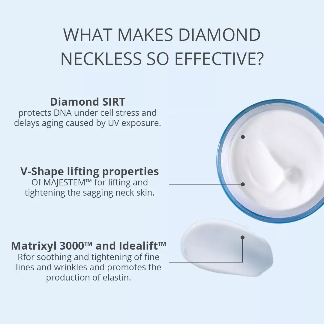Diamond Neckless tightens and lifts the sagging neck skin with a powerful blend of the most advanced ingredients available today.