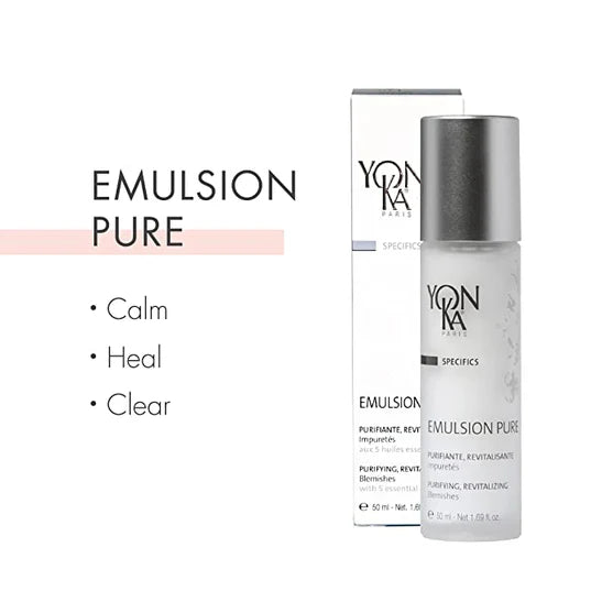 Our purifying, water-based breakout treatment for blemish-prone skin helps calm inflammation, excess sebum, and the occurrence of breakouts, leaving skin feeling fresh and healthy. Powered by our proprietary Yon-ka Quintessence for its healing benefits, Emulsion Pure naturally helps calm the skin, normalize skin behavior, and clear existing blemishes. With its power to renew and heal the skin while controlling infection, Emulsion Pure is perhaps the best all-natural solution to clear and rebalance the skin.