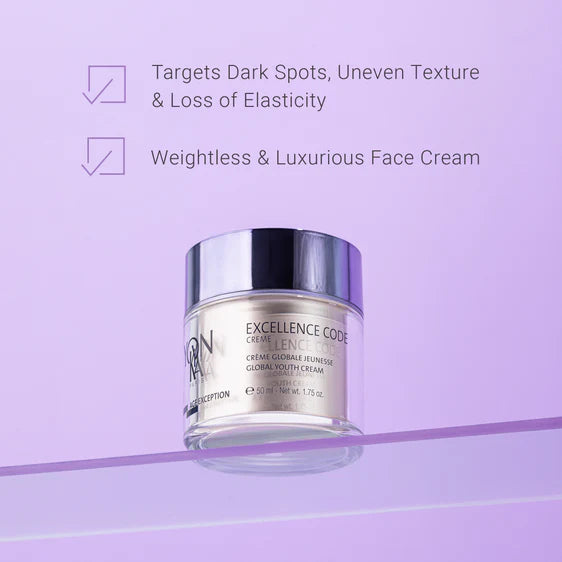 Ideally suited for mature skin that has been affected by hormonal changes. Powered by 20 unique actives to recode youthfulness and revitalize the complexion. Empowered by immortality herb, avocado and grape seed oils, shea butter, hyaluronic acid, thistle, and red algae extract, this revolutionary treatment regenerates and restructures the skin's outer layers, firms and evens coloring. With the pleasure of a smooth and comfortable texture, the elegance of a unique age exception scent, and the luxury and cleanliness of premium air tight packaging, this multi-patented cream is truly the gold standard of anti-aging skincare.