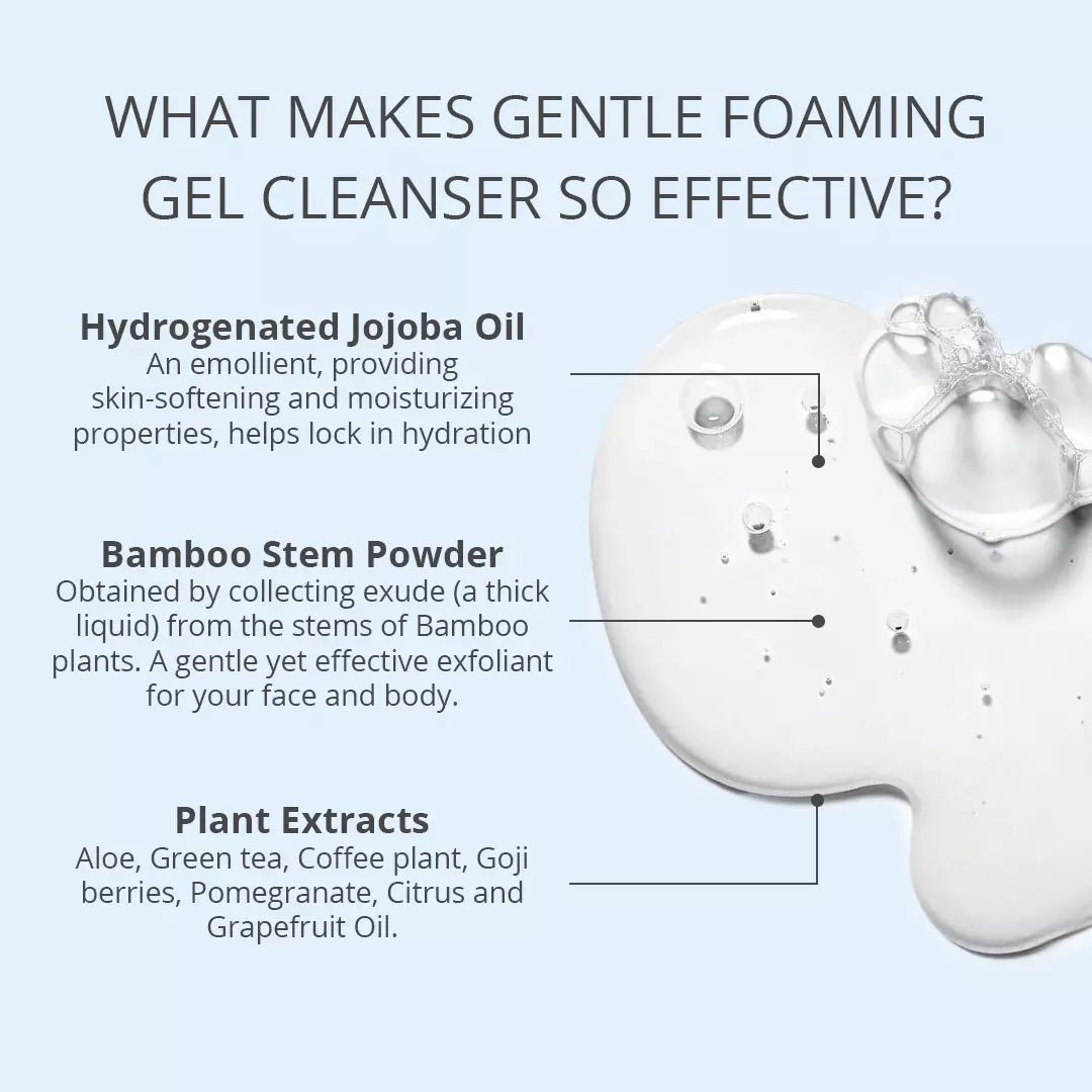 Gentle Gel Cleanser is a refreshing, foaming citrus facial cleanser and shaving cream. It removes makeup and impurities without disturbing the delicate pH balance of the skin. Healing Aloe, antioxidants and calming Chamomile Extract soothe and refresh sensitive skin.