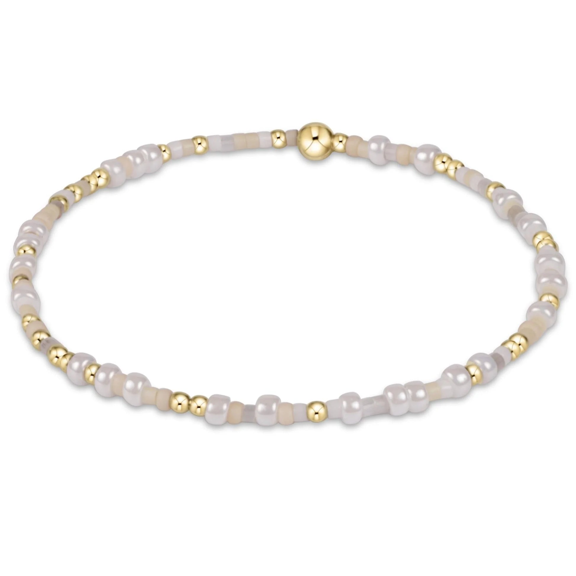 Hand beaded on high performance elastic for a slight stretch to easily roll on and off your wrist