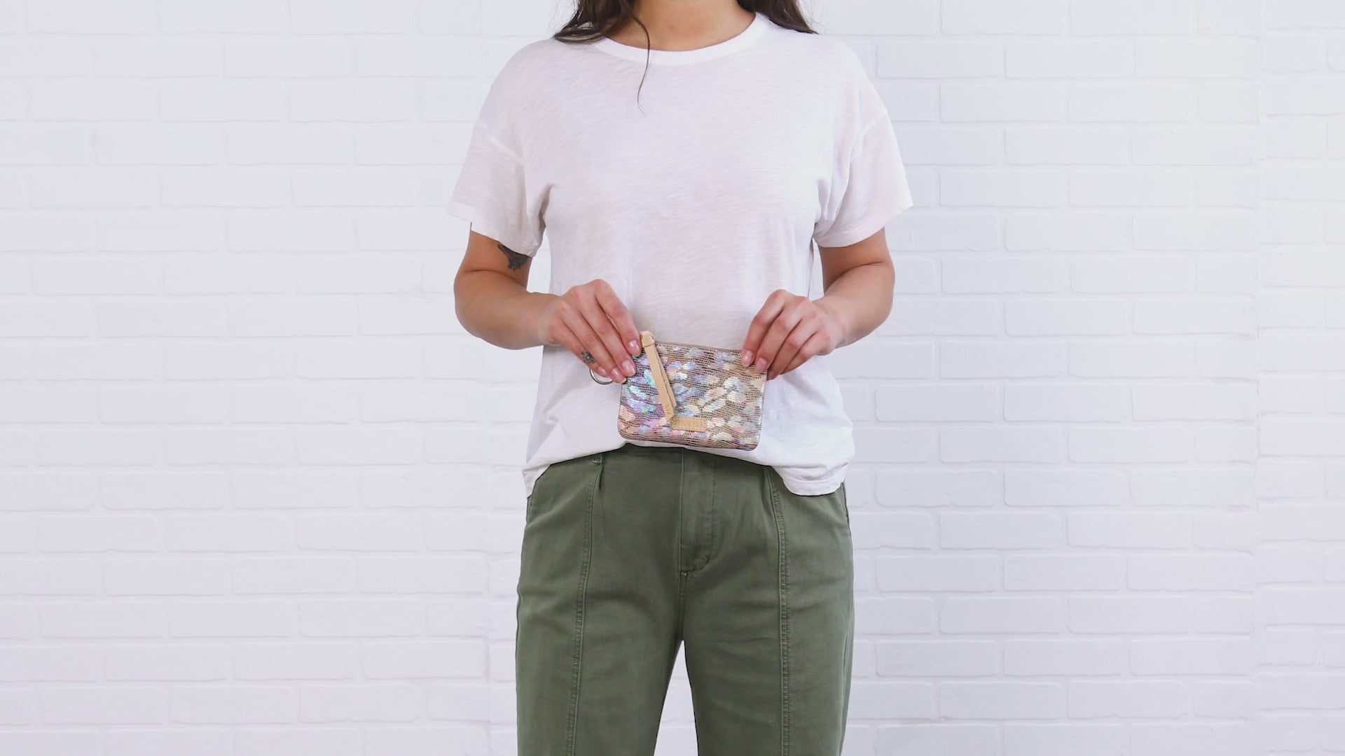 The Pouch is an easy, all-in-one bag to keep your cards and cash organized and on hand. An attached metal keyring takes the Pouch from your bag to keys with ease.