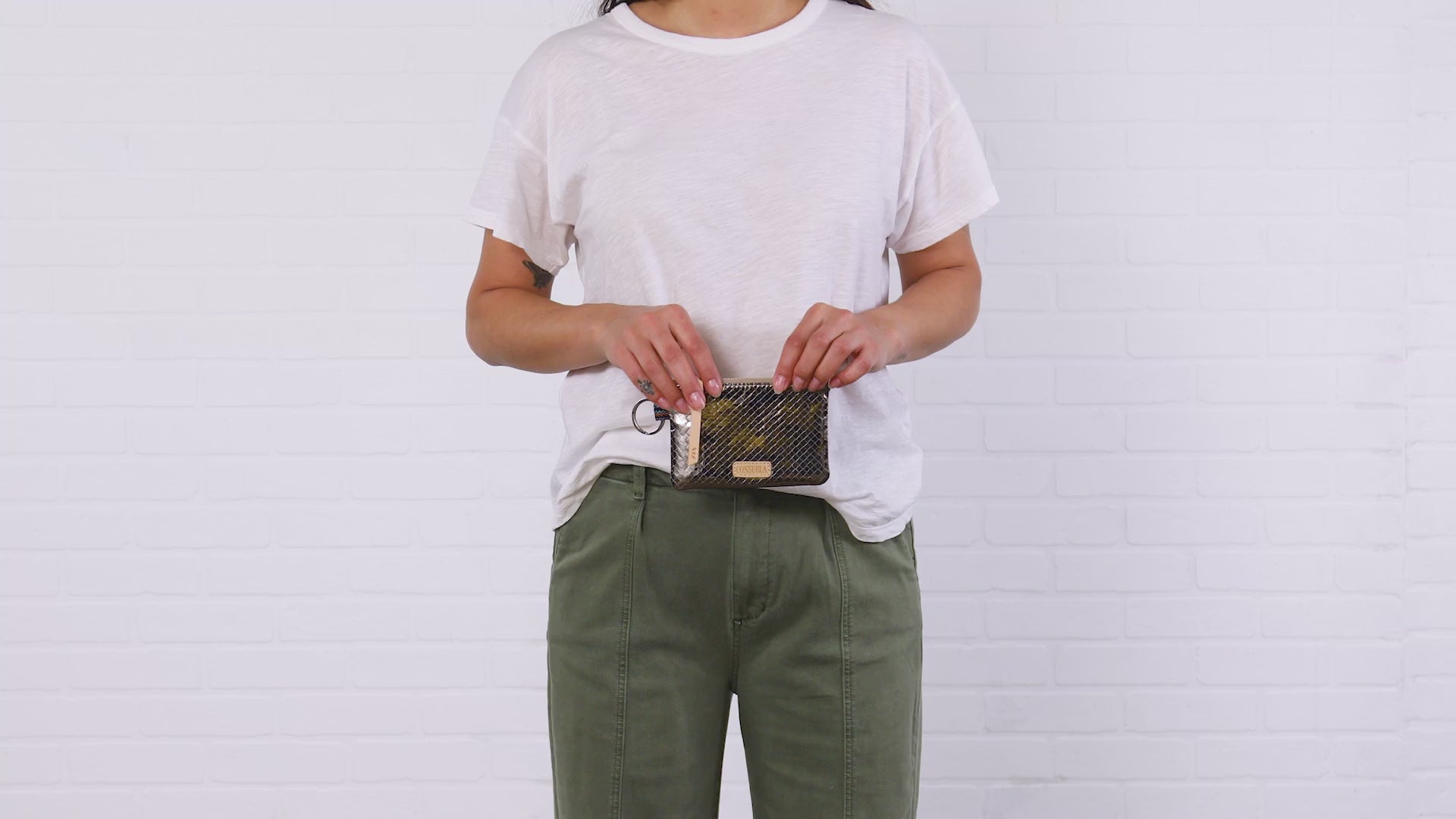 The Pouch is an easy, all-in-one bag to keep your cards and cash organized and on hand. An attached metal keyring takes the Pouch from your bag to keys with ease.