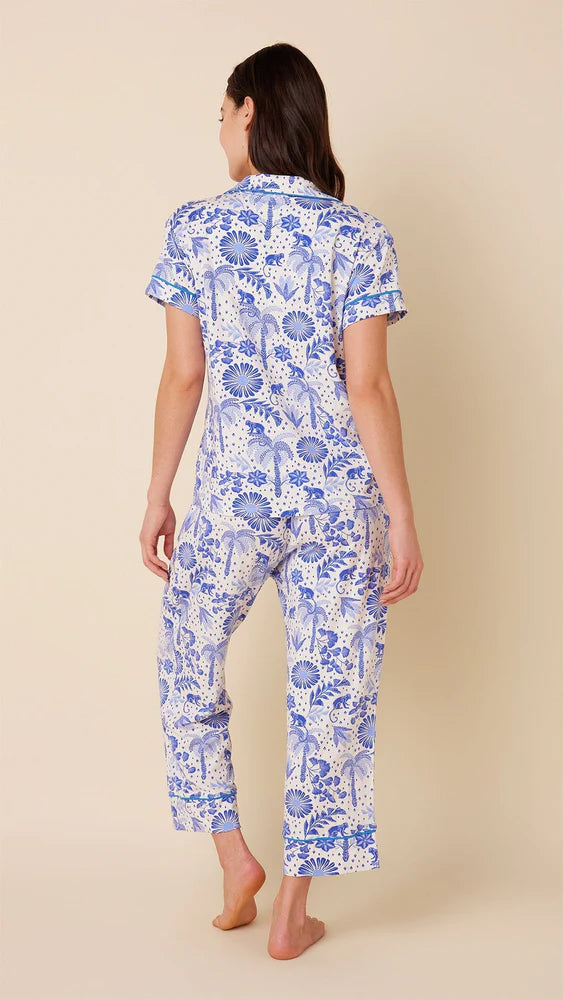 - Short-Sleeved pajama top and capri-length pant with pockets