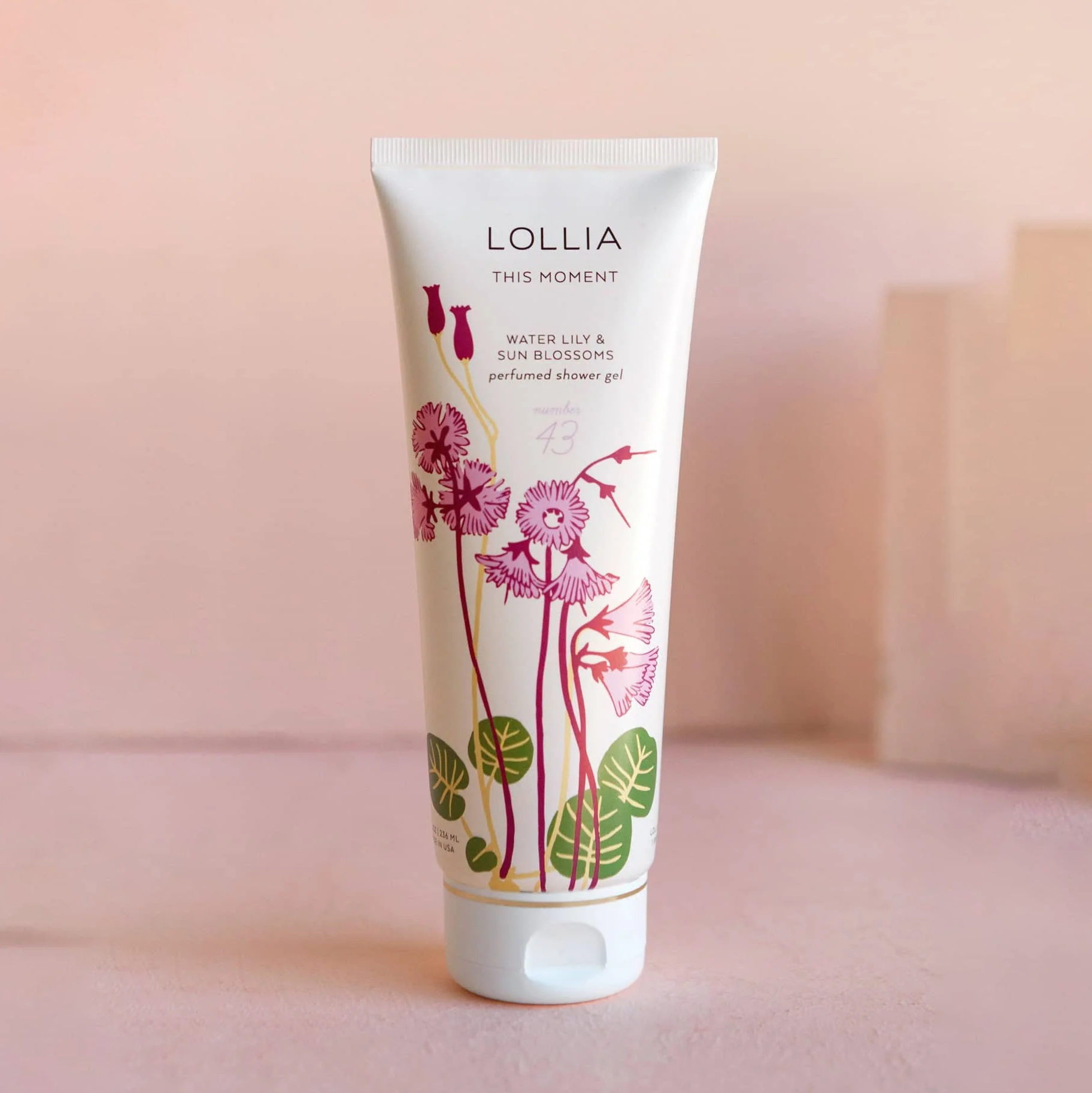 This Moment: Lose yourself in a luxurious lather of soft, soapy suds. Fresh botanical extracts condition and cleanse as honey-rich emollients of Shea Butter & Jojoba Oil smooth and moisturize, leaving skin refreshed and hydrated. Infused with uplifting notes of Water Lily & Sun Blossoms.
