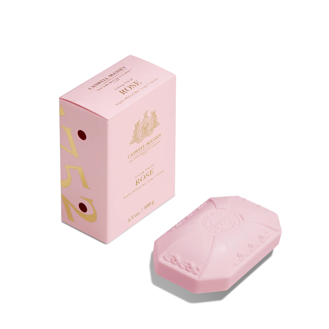 Our triple-milled Rose Soap features the fragrance of the prized Heritage Rose paired with our signature decorative form in a soft rose petal pink. Our enchanting Rose fragrance opens with notes of bergamot, receives depth from a heart of tart black currant & fig, and dries down with an earthy base note of vetiver and trail of musk. With its plant-based glycerin formula, our Rose Soap produces a rich lather for a gentle yet thorough cleanse suitable for all skin types.