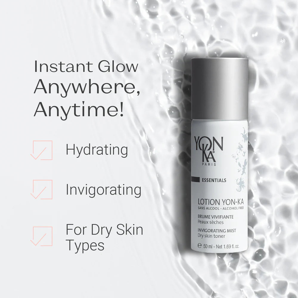 Our hydrating toner for dry skin optimizes your skin care routine as it refreshes and invigorates skin. Lotion Yon-Ka PS is a versatile healing water that drenches skin with the solar-charged energy of five essential oils for a multi-beneficial toning, purifying and invigorating effect. This alcohol free toner delivers an immediate, refreshing boost that deeply hydrates dry, dehydrated skin. With a delicate aroma, it soothes skin and energizes the body while enhancing the benefits of a Yon-Ka treatment regimen. Our iconic toning mist is a must-have, daily pick-me-up for those with normal, dry or sensitive skin.